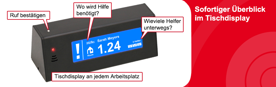 Anzeige auf allen Tischdisplays, wer und wo Hilfe benötigt wird